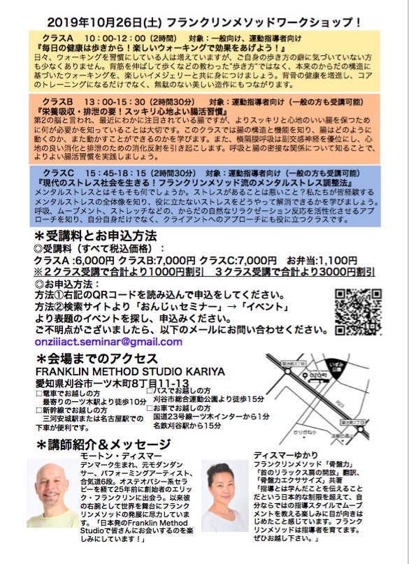 可能になります。何回受けても新たな発見があります。10月13日(日)午後2:30 ~ 5:30 Class B